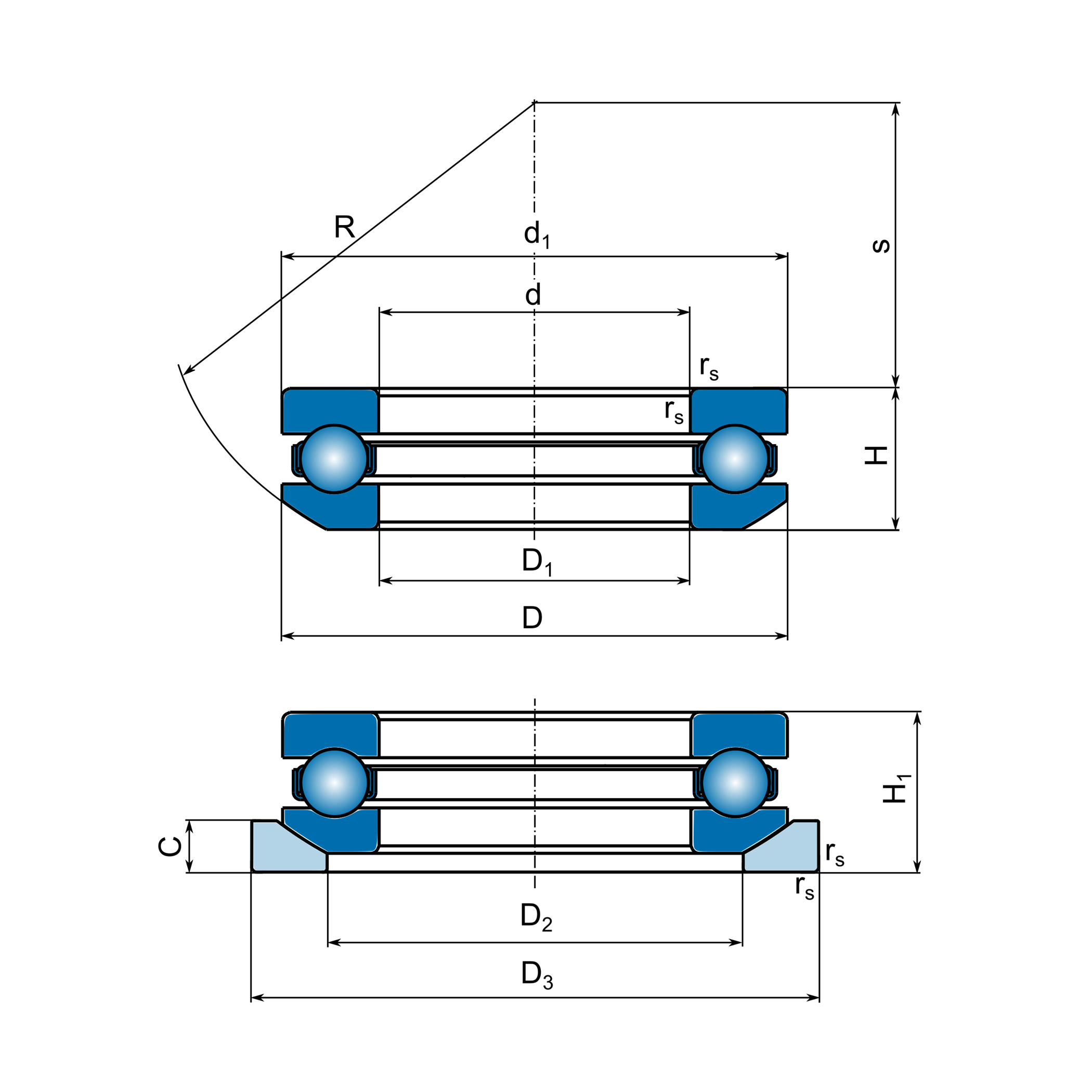 Одинарные упорные шариковые подшипники со сферическим свободным кольцом 53420 F ZKL