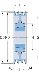 | f | Минимальное рекомендованное расстояние от края шкива до центра первой канавки | |